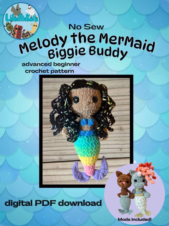 Dive into creativity with Melody the Mermaid! Melody features a colorful mermaid tail, curly hair, and comes with mod options to customize your own sea buddy. Whether you’re making her as a gift or for your own collection, this digital PDF download is sure to bring ocean magic to your crochet hook! Get your copy on Etsy —-> Melody the Mermaid pattern